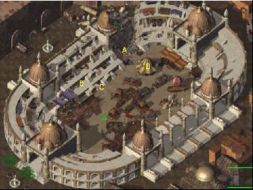 2. Chrám Rillifanův, vstupte, až budete mít 3 elfí artefakty. Vchod hlídají Rakshasové. Pokud se chcete pobavit, vyvolejte a pošlete na ně Skeleton Warriory, jsou proti jejich zbraním imunní.