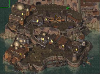 1. Vstup do města, můžete tu koupit zbraně, svitky, lektvary