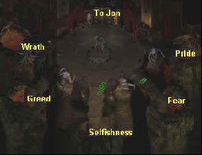 • Zkouška hněvu - potkáte ducha vašeho bratra Sarevoka. Nenechte se vyprovokovat k boji a jste za dobrého (+1 Charisma a Wisdom) nebo ho zabte a jakožto zlouni dostanete +2 Strenght
