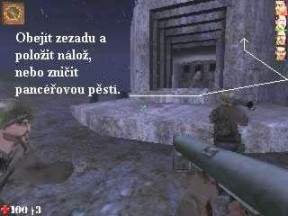 V této misi je vaším úkolem zničit pět obrněných nacistických bunkrů a zdemolovat čtyři dalekonosná děla, zabudovaná nastálo v betonových pevnostech. Musíte tak uvolnit vstup od moře na pláž, neboť se tam hodlají vylodit spojenecká vojska. Očekává se totiž těžký boj s fašistickou pěchotou a elitními vojsky SS a SA. Jděte tedy přímo od moře na druhou stranu a kolem drátěného zátarasu k prvnímu bunkru. Vstupte do něj zezadu, zastřelte kulometčíka a seberte dvoje nálože. Pokračujte k druhému bunkru, zde odpráskněte dva kulometčíky a jděte dopředu k třetímu bunkru. Opět zezadu do něj vstupte a zlikvidujte oba fašistické kulometčíky. U čtvrtého bunkru už na vás čeká nacistický tank, tak mu dejte co proto, vstupte do bunkru a postřílejte jeho osazenstvo. Uvnitř najdete tři lékárničky a pancéřovou pěst. I pátý bunkr se musí stát vaší kořistí, jsou v něm dva kulometčící, pancéřová pěst, nálože a lékárničky. Nyní se vydejte doleva do kopců kolem drátěných zátarasů až nahoru, pokračujte doleva a vpřed, až na pravé straně uvidíte pevnůstku. Náloží nebo pancéřovou pěstí zlikvidujte dělo. Uděláte to tak, že zezadu vystřelíte z pancéřové pěsti na méně chráněnou část děla, anebo položíte pod hlaveň nálož. Najdete si ji v inventáři, pravou a levou myší  ji načasujete a odentrujete. Tím se spustí čas od výbuchu, tak rychle i se svými kamarády poodejděte dopředu a můžete se zdáli podívat, co vaše nálož způsobila. Pak pokračujte dopředu k další pevnůstce a celý postup si tam zopakujte. Pokračujte dále vpřed a toto vše proveďte u třetí i čtvrté pevnůstky. Tím jste úspěšně splnili vám zadané úkoly pro tuto misi. Po likvidaci posledního děla pokračujte doprava, sejděte až dolů, tam musíte nejdříve zničit tank a postřílet dotírající fašisty. Tak jste spojencům tím, že jste zničili nepřátelská opevnění, otevřeli bránu do Normandie a zachránili tak mnoho životů vojákům v invazní armádě. Jděte dopředu k závorám, tím zakončíte tuto misi.
