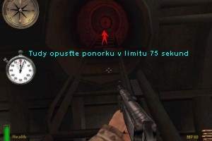 Sjeďte výtahem dolů, máte nasazenu plynovou masku a tím i horší výhled. Pobijte vojáky před sebou a dejte se doleva, potom doprava a zase doleva, pak doleva a doprava. Všude na vás číhají vojáci, tak se čiňte. Vpravo opět postřílejte vše živé, otočte oběma uzávěry a položte na zem nálož. Nyní máte třicet sekund na to, abyste se dostali zpět do výtahu a stiskli tlačítko. Tak hurá k výtahu, vyveze vás zpět nahoru. Konec levelu.