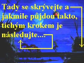 zastaví se na okraji propadla. Zopakujte příkaz (2), on seskočí dolů.