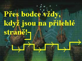 levou lávku, seshora padají ve dvou proudech úlomky, vyskočte tudí do levého.