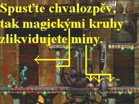 se doleva a deaktivujte ji, pak u můete skočit dolů doleva mezi miny. Přeskákejte