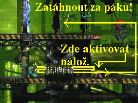 noi doprava k páce, za kterou zatáhněte, zruíte elektrickou bariéru.