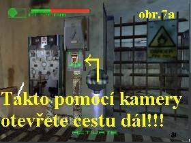 aktivujte ho, prohlédněte si přes kameru další místnost, pak z kulometu