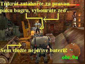 odstřelte zámky u dvojích vrat, z druhého kulometu sestřelte stěnu,