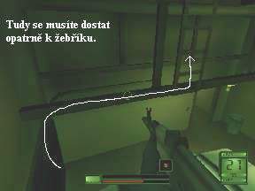 do dalšího ventilačního rozvodu. Na konci seskočte do chodby a jděte