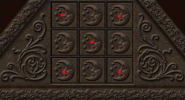 chýba oko. Vlož mu tam drahokam a oni ti ukážu svetlom ďalší postup. V strede