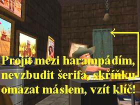 dopředu (Caps Lock+šipka vpřed), odbočte do chodby vlevo a na konci znovu