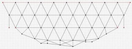 Poznámka : Tento most je obtížný tím, že nemá žádný KB na dně. Má pouze levý a pravý KB a další 2 KB na každé straně, které jsou sice na dně, ale nejsou ve větší hloubce. Tento problém vyřešíte nejlépe tím, že po sestavení konstrukce spojíte všechny spodní body a tak zpevníte dno.