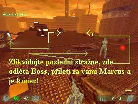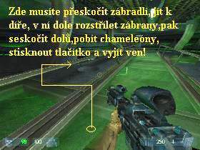 Sestupte dolů po schodech, před vámi zastřelte teroristku, má tuhý kořínek, potom zabočte doleva, v místnosti jsou náboje a na bedně si obnovte sílu brnění. Odbočte doleva a po úzké lávce vlevo pokračujte dopředu, na konci odbočte doprava, zastřelte banditu a vylezte po žebříku nahoru, po provazovém žebříku pak ještě výše. Nahoře vpravo odpráskněte teroristu, vraťte se a po šikmé ploše vlevo si opatrně sestupte dolů a po příčkách sloupu vpravo si vylezte nahoru. Jděte vpřed, sestupte na drátěné pletivo, po něm dole dopředu, potom doleva po lávce k dalšímu žebříku, po kterém si vylezte nahoru. Tam pak zabočte do uličky vlevo, na konci odbočte opět doleva. Cestou likvidujte teroristy, na konci odbočte do uličky vpravo, projděte jí až na konec, kde si opatrně seskočte dolů. Spatříte teroristku, jde velmi těžko zlikvidovat, tak se snažte se jí zbavit co nejdříve. Po její smrti v animaci pro vás přiletí vznášedlo, které vás odveze do další animace, v které se od muže jménem "Marcus" dovíte mnoho zajímavostí a novinek a to i o vaší přítelkyni "Juaně", budete zírat!