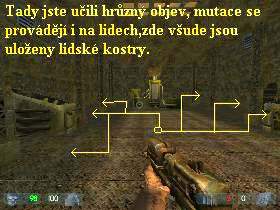 Teď jste tedy v laboratoři, kterou musíte zbavit všech mutantů. Jděte tudíž ke dveřím naproti, otevřete je tlačítkem, zachytí vás kamera a vzápětí budete napadeni mutantem. Prohlédněte si všechny místnosti, v jedné z nich si obnovíte sílu brnění, jinak ovšem už nic zajímavého nenajdete. Jděte tedy přes prosklené dveře po schodech nahoru, pokračujte uličkou doprava, na konci vejděte do dveří, kde skolte dalšího prevíta. Pokračujte po schodech nahoru, projděte dveřmi, zlikvidujte dalšího mutanta, na zemi je doplňování vašeho brnění. Vydejte se po schodech, zleva obejděte počítače, vpravo na konci uličky rozstřelte mříž a plazte se vzniklým otvorem vpřed. Pokračujte kolem větráku dopředu, na konci si potom seskočte do další šachty, zabočte doprava a vlevo opět rozstřelte mříž, pak opatrně slezte po žebříku dolů. Teď jste získali hrůzný poznatek, všude kolem jsou v sarkofázích uloženy lidské kostry, což neznamená ovšem nic jiného, než že váš zaměstnavatel provádí pokusy s mutací i na lidech, to je ale nadělení, viďte? No co naděláte, vraťte se tedy po žebříku zpět nahoru, pokračujte doleva a na konci si seskočte dolů. Další šachtou se doplazte k mříži, kterou rozstřelte z brokovnice a seskočte si dolů. Zastřelte dalšího mutanta, projděte dveřmi a po schodech sestupte níže, zde jsou další bestie. Pokračujte po schodech nahoru, vejděte do místnosti, vylezte na bednu a pokud už nemáte náboje do brokovnice, pak montážní pákou rozbijte další mříž, protože pistole je na takový úkon nedostačující. Prolezte šachtou, na jejím konci rozbijte další mříž a seskočte si do místnosti. Tím jste splnili všechny úkoly v této fázi hry, pokračujte tedy k výtahu, s kterým pomocí tlačítka sjeďte dolů. V následující animaci se setkáte se svojí přítelkyní Juanou, které porozprávíte vše o svých poznatcích, zmíníte se i o tom, že váš zaměstnavatel se snaží mutovat i lidi. Po skončení animace se ocitnete opět v centrále.