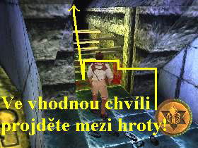 pokračujte chodbou vpřed. Proběhněte mezi plameny (jak, to u přece znáte)