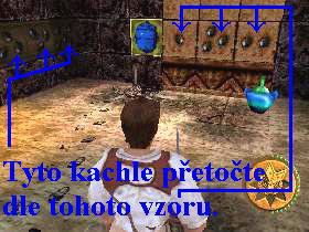 skarabové, kterých se zbavte. Seberte zlatý znak, pokračujte doleva, zapalte
