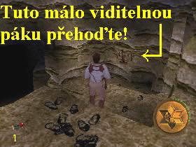 liánách nahoru. Vlevo otočte deskové tlačítko, seskočte do jámy a seberte bonusy