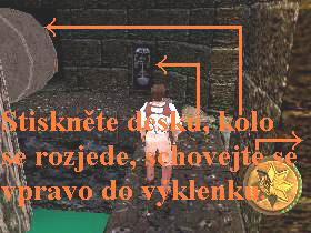 tlačítko, projděte dál a vlevo si vyskákejte po kamenných kvádrech nahoru. Vlevo