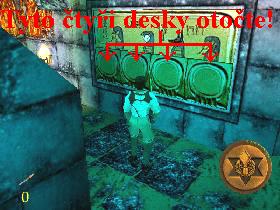 z výklenků, postupujte dál zeleně nasvícenou chodbou. Vpravo vylezte na kvádr,