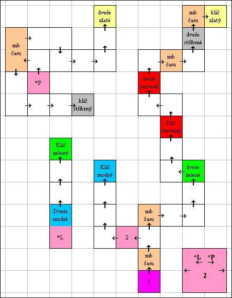 Místnost označená jako 2 má tu vlastnost že vlevo i vpravo se dá jít dvěma způsoby. Je zde totiž východ víc na kraji a pak i uprostřed. Vydáte-li se tedy vlevo úplně na kraji dojdete k modrému klíči a vlevo uprostřed vás pak dovede ke dveřím na které platí modrý klíč