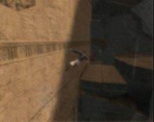 Najděte místnost s tahadlem, za které zatáhněte. Tak - frustrace a totální vynervování právě začínají. Zatažením se totiž vysune masivní brána, kterou budete muset využít k přeběhnutím po stěně. Musíte se tedy vrátit po ruinách na domek, kde byl bod k uložení a přeběhnout k dalšímu písečnému mraku dříve, než se brána zavře. Až se dostanete k písku (25), vyskočte na spínač, který aktivuje žebřík. Po stěně k němu přeběhněte a vlezte do místnosti vedle.