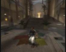 No a na samotný závěr vejděte pátými dveřmi, kde se přehraje animace s koupající se Farah (co by princ všechno neudělal pro trochu erotiky - ostatně jakmile skončí animace, budete se divit). Princ si užil (a vlastně neužil ?) a vy opět máte možnost ho ovládat. Probouzíte se na sarkofágu a ejhle - Farah vás obrala o všechno, co jste měli - o meč i dýku času (obrázek).