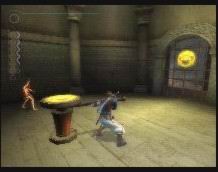 A teď se ocitáte v paláci zdevastovaném po útoku písečných příšer a budete s nimi mít tu čest bojovat a poprvé si vyzkoušet moc Dýky Času. Písečné obludy nelze zabít mečem, lze je pouze poranit až do stádia, kdy se přestanou hýbat, pokleknou a skloní hlavu k zemi. V tuto chvíli stiskněte směr, kterým se dostanete k nepříteli a stiskněte klávesu pro útok a nakonec pro vysání písku. Totéž opakujte, dokud všechny protivníky nezničíte. Uložte si hru.