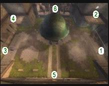 Dalším přeběhnutím po stěně se dostanete k páce s oranžovým symbolem, za kterou zatáhněte a otevřete bránu dole. Na vzdáleném konci balkonu (dole) je i písečný mrak (12). Zde vás napadne poměrně velké množství nepřátel a vzhledem k menšímu bitevnímu prostoru se snažte je zničit co nejrychleji. Po eliminaci protivníků se objeví místo pro uložení hry.