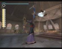Netrvalo to dlouho a máme tu samotný závěr hry a souboj s vezírem. Kupodivu není zrovna příliš odolný, jen umí vykrýt zhruba tři čtvrtiny vašich výpadů. To však neznamená, že by byl nezranitelný. Rovněž je velmi obratný (je až zarážející, jak se ten dědek umí otáčet ?). Zřejmě si ihned všimnete, že je princ zcela oblečený a má také u sebe svůj první meč (nebudeme si nic nalhávat - tento meč nebyl zrovna dobrý). Hned jak skončí animace, začněte držet klávesu pro krytí. Rázem se totiž nedaleko vás ocitne vezírova první forma. Vždy když zaútočí, pokuste se ho bodnout (dýka mu neublíží - písek v ní si prozatím uschovejte, ještě se bude hodit). Nesekejte do něj ale pořád. Vždy sekněte jednou nebo dvakrát a pozorujte, jestli klon problikne. Pokud ano, tak jste ho zasáhli. Rovněž nestůjte pouze na jednom místě, ale pohybujte se v jeho těsné blízkosti. Hned poté, co zaútočí, ho neprodleně sekněte.