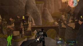 Zničte dom. Potom postupujte priamo a cestou zničte ďalšie dva. V diažke uvidíte štvrtý označený dom. Pri ňom máte Jumper Pack. Vezmite si ho, zničte tu štvrtý a piaty označený dom a v krčme si uložte pozíciu. Cesta ďalej pokračuje roklinou s ostrovčekmi. Nažavo vidíte šiesty dom, je pri ňom aj siedmy. Ďalej napravo, pri moste je dom číslo osem. Na ostrovčeku oproti sú domy devä, desa, jedenás. Na jedinej osídlenej plošine neďaleko je dvanásty dom. Potom sa dostaňte len na koniec levelu, na poslednej plošine sú posledné tri domy. Zničte ich a prejdite k bráne.