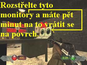 do místnosti vlevo, na levé zdi rozstřílejte oba osvětlené monitory. Vrate