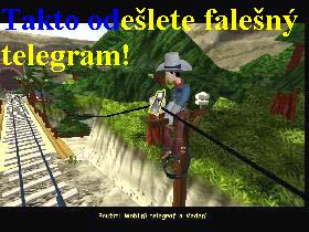 Vyjděte z banky ven, obejděte šerifovu kancelář zezadu, spatříte tam postávajícího býka. Inspiraci jak na to z novin znáte, klikněte na zamřížované okénko od cely, tak si promluvíte s uvězněným Tomem. Musíte bezpodmínečně vyčerpat všechny nabídky dialogů, tak se od Toma dozvíte, že byl falešně obviněn z krádeže dobytka na Starekově farmě, čeká ho soud a má si pro něj přijet do vězení policejní komisař. Velice podstatná pro vás bude ale důležitá informace, že místní šerif, kde je Tom uvězněn, očekává každou chvíli od komisaře telegram, v kterém mu tento oznámí příjezd a šerif ho bude muset jít očekávat na nádraží a pak také přiznání Toma, že umí padělat jakýkoliv podpis. Vejděte tedy z druhé strany do šerifovy kanceláře a proberte s ním všechny možnosti dialogů, budete se muset možná i vrátit, dokud z něj nevytáhnete všechny informace, pokud byste tak neučinili, další postup je nemožný (informace o způsobu příjezdu komisaře a o čekání na telegram). Je tedy zcela evidentní, že budete muset celou záležitost vzít do vlastních rukou a vymyslet pořádný fígl. Zajděte si proto do obchodu a zde za 8 dolarů kupte přenosný mobilní telegraf, potom se vraťte nazpět k býkovi a zkuste otevřít vrata naproti drezíně. Nepůjde vám to, takže použijte provaz z inventáře na kladku nad vraty, tak odhodíte závoru a vstupte do skladu. Tam seberte další provaz a hlavně opasek na šplhání. Nasedněte na drezínu a odjeďte na ní k železničnímu mostu, na kterýkoliv telegrafní sloup použijte opasek, tak vylezete po sloupu nahoru. Tam použijte na telegrafní vedení mobilní telegraf (obr.6), z nabízených možností si vyberte možnost odeslat fingovaný telegram šerifovi (pokud odešlete i zbývající telegramy, nic se neděje), jako komisař v něm požádáte šerifa, ať komisaře jde očekávat na nádraží. Vraťte se na drezínu a na ní zpět do města, zastavte se na nádraží u telegrafisty, požádá vás, abyste telegram doručili šerifovi, což velice rádi uděláte. Jakmile šerifovi telegram předáte, ten se sebere a odejde na nádraží očekávat příjezd komisaře, dveře od kanceláře však zamkne. Znovu si přes zamřížované okno zezadu promluvte s Tomem, poví vám, že přes mříže vidí v kanceláři viset klíč, na který nedosáhne. V inventáři byste měli mít skládací dřevěný metr, který jsem vám poradila sebrat ve škole ze školní lavice, podejte ho tedy Tomovi a ten si klíč přitáhne. Ke dveřím mříží ale klíč nepasuje, takže ho dá vám, jděte ke vchodu do šerifovy kanceláře a klíčem si dveře otevřete. Nejdříve uvnitř seberte všechny dolary, jsou v pravém šuplíku šerifova stolu, další pak v zásuvkách pod skříní se zbraněmi, v malé skříňce nalevo od vchodu jsou také a vyberte i zásuvky u malého stolečku napravo od vstupních dveří, seberte také na zdi vlevo šerifův jmenovací dekret. V prostředním šuplíku ve skříni se zbraněmi naleznete červený hadr, seberte ho a vyjděte ven, namiřte si to k býkovi. Na něj použijte červený hadr (inspirace z novinových zpráv), ten se rozběhne proti zdi a rozrazí ji, tak jste osvobodili Toma, ten se půjde ihned ukrýt na farmu Alvina. Takže máte první úkol splněn, získali jste muže do vašeho týmu obránců. Z novin jste se také dověděli, že na vyhození mostu potřebujete Winchestrovku a dynamit, takže jdeme na to.