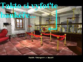 Vydejte se do města a v obchodě se zeptejte kramáře, zdali nemá materiál na stavbu opevnění farem. Dozvíte se, že abyste mohli požadované zboží zakoupit, musíte být bezpodmínečně vlastníkem platební karty SISA, tu můžete samozřejmě získat jen v bance, takže se tam ihned vydejte Bankéře požádejte o tuto kartu, ale odmítne vám ji vystavit, takže vám nezbude nic jiného, než banku vykrást, jak na to, jste opět zjistili v novinách. Zeptejte se bankéře, kolikrát už banka byla vyloupena, tak vám povypráví o bezpečnostní kameře, umístěné na zdi, která každých třicet sekund zasílá snímek bankéře do bezpečností ochranné agentury. Použijte na bankéře fotoaparát z inventáře (pokud jste nedali na mou radu, pak fotoaparát naleznete v pracovně na Starekově ranči), představíte se jako fotograf z časopisu Národní hospodářství a tak bankéře vyfotografujete za přepážkou banky (obr.7). Vraťte se do obchodu, projděte vlevo dveřmi a sestupte dolů po žebříku do fotografické komory, získaný negativ je třeba nyní vyvolat, použijte tudíž negativ na vyvolávací přístroj, potom na něj klikněte, v inventáři nyní máte fotografii z banky. Vraťte se do banky a fotografii použijte na kameru, bankéř vás ale seřve. Promluvte si tedy s ním a řekněte mu, ať vypne (nebo zapne) větráky. Jakmile odejde od přepážky, zkuste znovu fotografii použít na bezpečnostní kameru, tentokrát však vám to znemožní věčně vás sledující Kraťas, musíte se ho tudíž nadobro zbavit. Vydejte se do Saloonu a počkejte, až tam Kraťas vejde také a posadí se ke stolku. Promluvte si potom s ním a zeptejte se ho, co pije, budete vyzváni no souboj v pití ostrého nápoje, sarsaparrily. Výzvu samozřejmě přijměte, ale protože je Kraťas v této soutěži po celém kraji známým a vyhlášeným přeborníkem, samozřejmě prohrajete. Berte na vědomí, že samotný souboj je založen nikoliv na vaší výdrži v pití samotném, ale na vašem ostrovtipu a vnímavosti. Na každou urážku vašich dalších soupeřů je nutno najít tu správnou, vtipnou a rýmující se odpověď. Poté předhodíte vašemu sokovi vaši urážku a je teď na něm, aby správně zareagoval on. Vaším úkolem tedy nyní je naučit se od následujících slabších soupeřů veškeré urážky a odpovědi na ně, ale abyste se to naučili, nejdříve několikrát musíte prohrát a zaplatit pití, tedy jeden dolar. Teprve až si osvojíte všechny otázky, tedy urážky a odpovědi na ně, soupeře porazíte. Prvním vaším outsiderem je Kníráč, stojící u pultu, začněte s tím, že zahájíte slovní souboj s ním. Pokud vyhrajete, soupeř zůstane stát u šenku, jako solný sloup, vyjděte tudíž ven a znovu se vraťte, pak můžete soutěžit dále. Od Kníráče se musíte naučit tyto urážky a odpovědi na ně: „Na tohle seš hochu krátkej“-„Seš samý kecy, ale krok máš vratkej“, „Málem jsem tě už porazil“-„Leda tak ve snu, mám ještě hodně sil“, „Nechceš s tím trochu pomoct? Vypijem to spolu!“-„Nechci tě trápit, vím že máš spíš na dietní kolu“. Jakmile se vám podaří ho urazit urážkou „Koukám, že se celý třeseš“, na ni Kníráč odpověď nezná a prohraje. Tedy opět ven ze Saloonu a vrátit se zpět, pokud jste vyhráli už definitivně, potom se u pultu objeví Špekoun. Postup slovních soubojů je stejný jako s Kníráčem, jen je zapotřebí si doplnit váš rejstřík o nové urážky a odpovědi na ně. „Co to cítím…, snad nemáš plné kalhoty?“-„Chceš se podívat? Ale ne, abys dělal drahoty“, „Když hraju proti tobě, nemám se čeho obávat“-„To jsi asi zvyklej pořád prohrávat“, „Nemám ti přinést bryndáček?“-„Jen mi ho přines…, utřu ti s ním rypáček“, „Je čas vyslovit poslední přání“-„Tak si pospěš…, stará už tě doma shání“, „Co to cítím, snad nemáš plné kalhoty?“- Na toto nezná Špekoun odpověď a vždycky prohraje. Jakmile tedy vyřídíte Špekouna, u šenku se objeví poslední z outsiderů, tedy již známý Střelmistr. Postupujte stejným způsobem, naposledy si doplňte svoje zásoby urážek a odpovědí na ně. Jsou ale principově naprosto stejné, jako ty oboje předchozí, tentokrát jen musíte prokázat, že správně volíte nejen všechny známé urážky, ale i odpovědi na ně a zadávat pohotově další urážky a zkoušet tak Střelmistra. „Kopni to do sebe…., nemám čas se s tebou párat“-„Spěcháš domů? Snad se ti nebude fenka hárat?“, „Porazit tě je pro mne úplná hračka“-„Určitě menší, než s ranní hygienou rvačka.“, „Vypadá to tak, že nezvládneš další sklenku“-„O to ty se neboj a vyměň si raději plenku!“, „Jakou máš adresu? Pošlu na ni tvý mrtvé tělo?“ Na tuto urážku Špekoun nezná odpověď a vždycky na ni prohraje. Vyřídili jste tedy i Střelmistra? Pak jste tedy trénink i výuku s úspěchem zakončili a je načase podstoupit souboj se samotným Kraťasem, který už žádné jiné urážky a správné odpovědi na ně nemá ve svém rejstříku, má jen ty, které jste se naučili a máte je tudíž v malíčku. Takže abyste se ho navždy zbavili, je třeba začít a pokračovat takto: „Jakou máš adresu? Pošlu na ni tvý mrtvý tělo!“-„Abych já neposlal tvoje…, seš nalitej jak dělo!“. Definitivně ho zlikvidujete těmito urážkami, na které nezná odpovědi: „Piješ hůř než ňákej malej cucák“, „Vypadáš bledě. Nechceš do radši vzdát?“, „Kdybys chodil do školy, naučil by ses rýmovat“ a „Máš místo mozku z piva kostku“. Tak tedy nad tímto vejtahou vyhrajete a zbavíte se navždy jeho nevítaného doprovodu. Nyní se vydejte do banky, abyste ji mohli přepadnout. Bankéři řekněte, aby vypnul (zapnul) větráky a 