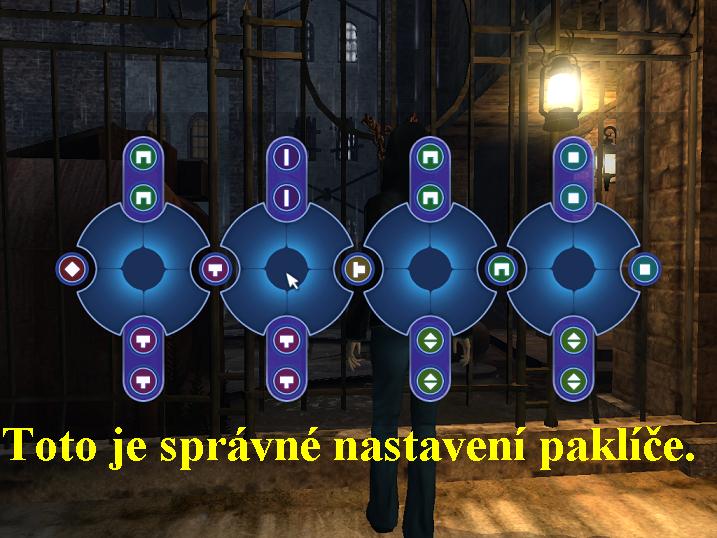 Jako Zoë jste tedy bez úhony dorazili do Newportu. Nacházíte se ve čtvrti Venice, odbočte tudíž doleva do ulice Venice Crossroads, na jejím konci odbočte na lávku vlevo, tak dojdete k čínskému obchodníkovi, se kterým proberte všechny nabídky rozhovoru, od něj se potom dozvíte, jak se dostanete k baru The Fringe. Vraťte se tedy zpět, odbočte na můstek vpravo, zahněte doleva a hned poté doprava a ještě jednou doleva. Proběhněte podchodem a na konci zabočte vlevo a jste na místě. U dveří s nápisem The Fringe zazvoňte na bzučák, ozve se vám Charlie, zeptejte se na Reza, ale on ho nezná. Ptejte se tedy znovu na Rezu pod jménem Jericho, tak budete vpuštěni dovnitř. Promluvte si s hosteskou za pultem, není moc vlídná, ani příjemná, přesto vám poví, že vámi hledaný Charlie se nachází na druhém konci baru. Vydejte se tedy tam, Charlie je ten muž, sedící za stolem. Proberte s ním všechny otázky, které se vám nabízejí, vzpomene i na starý Border House, jehož majitelkou byla Fiona, který se dnes nazývá Victory Hotel, dozvíte se od něj též mnoho z jeho minulosti. Jakmile vám vysvětlí, kudy se tam dostanete, odporoučejte se a vraťte se zpět na ulici. Stejnou cestou, po které jste sem přišli, se vydejte zpět k čínskému obchodníkovi, zazvoní vám mobil, přijměte hovor, promluvíte si s Olivií. Poté se zeptejte Číňana na cestu k Hotelu Victory, poradí vám. Přeběhněte tedy po schůdcích přes most do jiné části města, odbočte doprava, zabočte vlevo, poté doprava a nakonec doleva. U dveří zkuste použít zvonek, ale nikdo se vám neozve. Vlevo od vás je lešení, seskočte na něj a slezte až úplně do vody a vstupte do kanálu, jak vám to před chvílí poradil Charlie, na jeho konci vylezte nahoru po žebříku. Nahoře si prohlédněte zámek u brány, abyste ho mohli posléze popsat Olivii. Poté jí zavolejte z mobilu, od níž se dozvíte, že tento visací zámek nelze hacknout, ale že potřebujete sehnat paklíč. Vraťte se tedy známou cestou k čínskému obchodníkovi a znovu si s ním promluvte. Požádejte ho o paklíč, ale nebude vám ho chtít prodat, je ochoten ho pouze vyměnit za software, kryjící všechny mobily před OKO syndikátem. Zavolejte tedy z mobilu znovu z mobilu a požádejte ji o zmíněný software, pošle vám jeho funkční, ale okleštěnou kopii, originál co máte vy vám podruhé nedá. Opět si promluvte s Číňanem a tak mu tento prográmek předáte, je velice spokojený a dá vám potřebný paklíč. Stejnou cestou, kterou už dobře znáte se vraťte zpět k uzamčené bráně a použijte na zámek z inventáře paklíč, nyní na vás čeká další rébus. Před vámi se objeví čtyři kola, všemi lze otáčet. Na kolech jsou různé symboly, nahoře nad nimi i dole pod nimi také. Nyní je nutné nastavit kola tak, aby symboly na kolech byly shodné jak se symboly nad nimi, tak i pod nimi. Problém ale spočívá v tom, že ne na všech kolech jsou tyto symboly nad a pod nimi k nalezení. Symboly na kolech však lze mezi koly přenášet, jakmile tedy máte na jednom kole znak a pootočíte kolem sousedním, tak se přetočí i symbol, který se stane symbolem sousedního kola, Tímto způsobem lze tedy přesunovat symboly dokonce i přes všechna kola, takže si promyslete, které znaky je třeba kam přemístit, začněte zprava. Jakmile se vám podaří na prvém kole znaky nastavit tak, aby byly ty na kole shodné s těmi nad i pod ním, tímto kolem již nehýbejte a pusťte se do dalšího. U tohoto rébusu nemusíte s řešením spěchat, žádný časový limit vás netlačí, tak si jeho řešení vychutnejte. Jakmile se vám podaří toto nastavit správně u všech kol0000006545_n03.jpg (71652 bytes) (obr.3), zámek na bráně se vám otevře a můžete vstoupit dovnitř. Je tu ale další problém, divoký hlídač pes vlčák, pokud nebudete dostatečně obezřetní, napadne vás a roztrhá vás na cucky. Všimněte si, že vlevo od vás jezdí nahoře každou chvíli vlak, způsobující hluk. Vydejte se tedy tiše (levý Ctrl) prvou stranou dopředu vždy tehdy, když vlak právě projíždí, u zdi zabočte doleva, pokud vlak přejede, zůstaňte stát a vyčkejte, až pojede další. Opatrně a tiše si otevřete vrata od kolny a ze zdi vpravo seberte sekyrku, stejně tiše a opatrně se vraťte zpět k žebříku a slezte po něm dolů. Jděte doprava ke kontejneru, jistě jste si všimli, že vlevo nad vámi je deskami zatlučené okno, z nějž probleskuje světlo. Prohlédněte si kontejner, tak zjistíte, že je blokován železnou tyčí, kterou odstraňte. Poté se postavte zezadu za kontejner a čtyřikrát po sobě jej dotlačte dopředu až pod zabedněné okno. Vylezte si na něj a na okno použijte z inventáře sekyrku, tak latě odstraníte, sekera vám spadla dovnitř, tak si vlezte za ní oknem dovnitř.