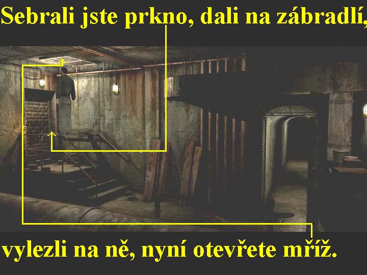 Vydejte se tedy vpřed, zabočte doleva a přejděte přes most, pokračujte dále, procházejte chodbami označenými kurzory „průchod“, nikoliv „chodba“, prakticky zabloudit nemůžete. Tak dojdete až na konec, kde seběhněte po schodištích až úplně dolů, kde vejděte do dveří vpravo. Nyní jste se ocitli ve FULTON STATION, otočte se ke dveřím, kterými jste sem přišli a vpravo od nich na zdi si vypínačem rozsviťte. Jděte dále tak dlouho, až přijdete k mapě podzemních kanálů, je na zdi, tak ji seberte a vracejte se zpět ke dveřím a projděte jimi nazpět. Vydejte se po schodištích až nahoru, stejnou cestou, po které jste sem přišli se vracejte až k mostu, z kterého jste sem odbočovali, přejděte ho a dejte se doleva. Vstupte do průchodu, jděte dál, ze země seberte botu, pokračujte stále vpřed, dojdete tak k dalším dveřím, kterými opět projděte. Jste nyní na stanici Metra LAFAYETTE, tady to přece už znáte, ale tady to teď vypadá!!! Vydejte se dopředu až k poslednímu vagónu, narazíte na Charlieho, zkuste si s ním pohovořit, no nemá žádnou chuť se s vámi vybavovat. Takže vstupte doleva dovnitř vagónu, kde narazíte na profesora, s kterým musíte probrat naprosto všechny možnosti dialogů, důležité je se ho zeptat na to, co ví o Grahamovi Oswaldovi. Popojděte až na konec vagónu, kde naleznete na podlaze ležícího Oswalda, i s ním proberte všechny možnosti rozhovorů, důležité je od něj zjistit heslo, kterým se spouští u něj doma v bytě počítač, jsou v něm totiž důležité informace o souřadnicích, které musíte znát. Chce se také za každou cenu setkat s manželkou a synkem Tommym, chce abyste oba přivedli sem, také vám poví o připraveném letadle. Oswald je raněný, ztratil velké množství krve, takže po skončení rozhovoru omdlí, spustí se animace, ve které spatříte, jak v Oswaldově bytě řádí Policie. Víc z něj již nedostanete, takže se po skončení zmíněné animace vraťte zpět k profesorovi, opět s ním proberte všechny dialogy, dozvíte se všechno o nyní již mrtvém kytaristovi. Hlavně vám musí ale povědět o dalším hochovi jménem Jurij, který stojí na konci vagónu venku na nástupišti opřený o berlu. Také s tímto hochem je zapotřebí probrat všechny dialogy, poté se vám nabídne, že vás provede přes zcela temnou část podzemních chodeb, neboť prý to tady velice dobře zná, potřeboval by však svoji ztracenou botu. No tu jste přece našli, takže na botu v inventáři použijte nit, tak botu opravíte a předejte ji Juriovi, tak vás převede přes tmavé chodby. Tak dojdete až k potrubí, seberte jednu z desek, opřených o zeď a položte ji vlevo na zábradlí, poté si na desku vylezte, otevřete mříž nad hlavou a vytáhněte se do šachty0000006729_n07.jpg (66973 bytes) (obr.7). Spustí se animace, v níž vylezete horizontální větrací šachtou po kramlích až do 23. patra a ocitnete se na záchodku u výtahu ve vašem patře. Pootevřete si dveře do chodby y tiše zavolejte na Tommyho, který se po chodbě prohání na koloběžce. Pošeptejte mu, co potřebujete od jeho matky, také mu sdělte, že máma musí sebrat údaje z počítače, sdělíte Tommymu heslo a řeknete mu, že jeho máma musí něco vymyslet, aby se oba dostali sem za vámi, přece víte, že v bytě Oswaldových se nacházejí policajti. Tommy poslechne a v animaci mámě vše vyřídí, nyní je na vás, abyste jako Deborah šli k počítači, zadali heslo a důležité informace o souřadnicích Oawaldova soukromého letadla sebrali. Poté budete ovládat ještě chvíli Deborah, jděte tudíž do dětského pokoje, přistupte o oknu a přibližte si krabici, vedle ní leží pytlík bonbonů JUMBLE BEARS, který seberte. Vraťte se a jděte ve vašem bytě na záchod, kde bonbony nasypte do záchodové mísy a chvíli vyčkejte, až tam tyto nabobtnají, poté spláchněte. Pokud jste to udělali dobře, musí záchodová mísa přetéci. Nyní se vraťte zpět do obývajícího pokoje a promluvte si se strážcem vlevo v tmavých brýlích, musíte opět vyčerpat všechny možnosti dialogů. Mluvte do něj tak dlouho a ptejte se ho na všechno tak vytrvale, až mu budete moci říct, že záchod ve vašem bytě je ucpaný a tudíž musíte použít ten na chodbě u výtahu. Druhý strážce má sice připomínky, ale ten první vám to dovolí, vydejte se tedy i s Tommym na chodbu a dveřmi vlevo od výtahu vejděte na záchod, kde se setkáte s Peterem. Tak předáte Peterovi mapu se souřadnicemi a v animaci všichni společně slezete po kramlích dolů a všichni tři se tak ocitnete u Oswalda, ten si s nimi povykládá, ale sám už má „na kahánku“ a po chvíli zemře. Teď už za Petera vystupte z vagónu ven, počkejte až za vámi v animaci přijde Deborah, aby vám za vše poděkovala, slíbíte jí, že dílo, které začal Oswald dokončíte za něj a poté, co se s ní rozloučíte, v další animaci proběhnete podzemními kanály zpět, vylezete z podzemí otevřeným poklopem ven a tak se ocitnete přímo před letištní halou a s Oswaldovým malým soukromým letounem odletíte na Aljašku.