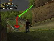 Obrázek ukazuje místo s rampou, kde udělejte spin dolů na rampu a s tou