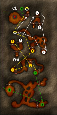 jít dál. Takže běžte podle mapy (Každá barva označuje jinou cestu kterou