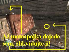 domech, střílejí zákeřně ze zálohy. Pokračujte dopředu kolem vraku náklaďáku,