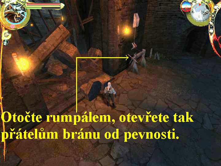 nahoru mezi kamenné sloupy, tam si opět v animaci pohovoříte s Velmistrem,
