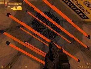 U mrtvoly seberte náboje a zbraně a čeká vás dalí větrák a nad ním nebezpečné lasery, kterým se budete muset vyhnout.