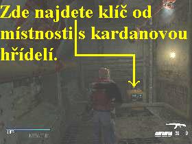 Uvnitř seberte mrtvole náboje, vraťte se zpět po schodištích až k prvnímu