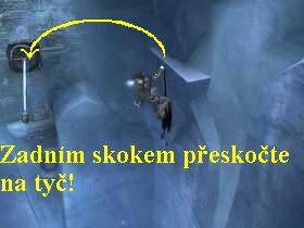 povytáhněte se vý a skočte zadním skokem na tyč, z ní pak na dalí,
