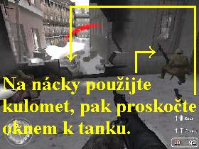 tankového kulometu a jakmile tank zatočí a obnaží svůj bok, přiskočte k němu