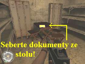 se plazte (CTRL), tak se dostanete do zbrojnice, kde si vyměňte pistoli za
