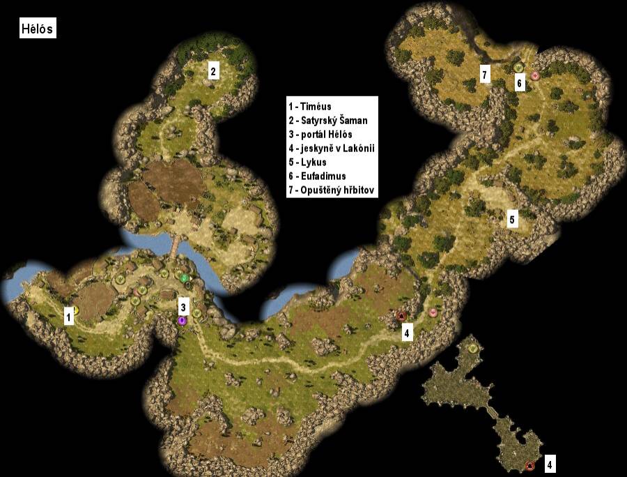 Diomédem. Pokračujte přes lávku na sever do Hélských lesů, kde najdete