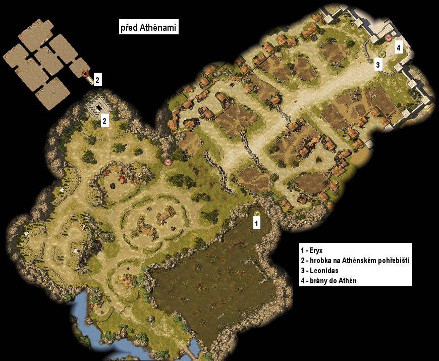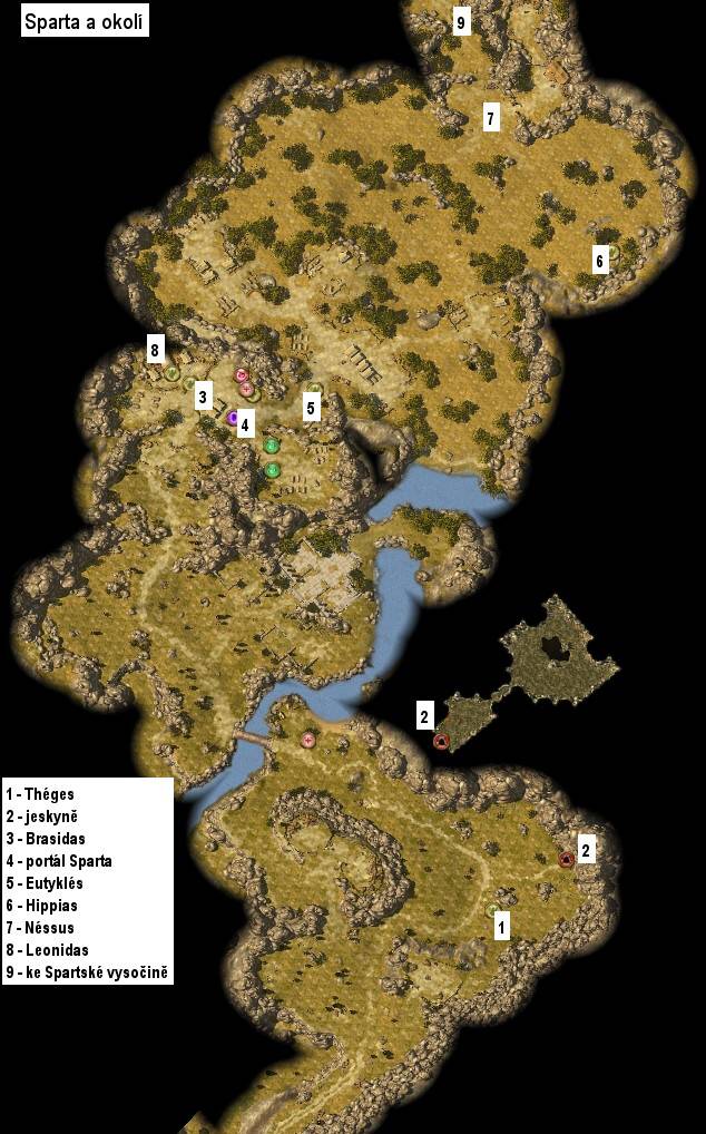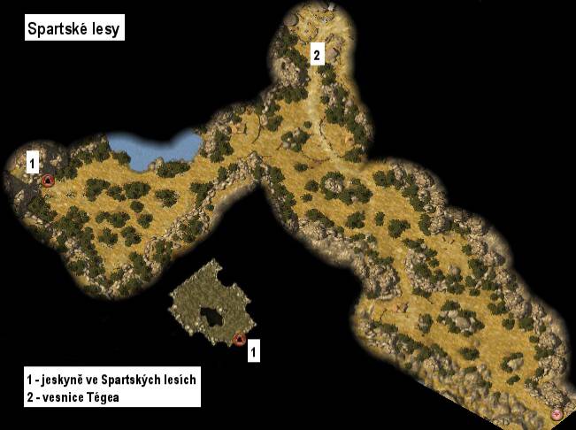 Tellise a vězní ho v nedaleké jeskyni. Vstupte tedy do Lakónie, procházejte