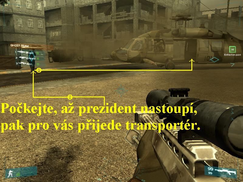 odletí. Teď obdržíte pokyn „Extraction Point“, sledujte zelený ukazatel
