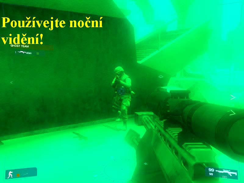 noční vidění. Jakmile místnost „vybílíte“, obdržíte poslední příkaz