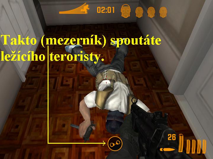 kryjte sebe i členy vašeho komanda. Pobijte i teroristy v chodbě před vámi,