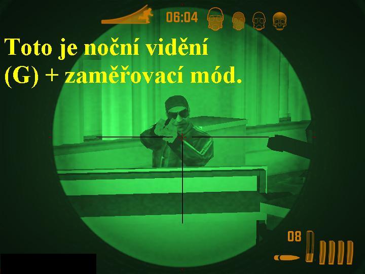 a vašeho komanda. Rozsviťte si na odstřelovací pušce baterku (F), nebo zapněte