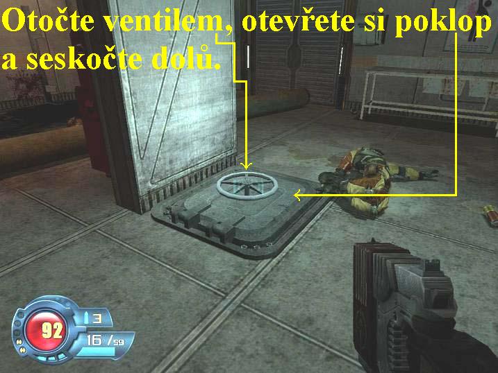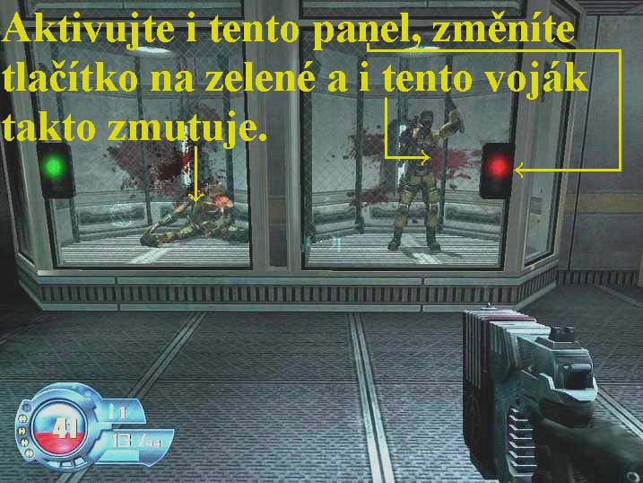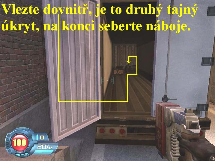likvidujte vojáky. Na konci projděte dveřmi doleva, v chodbě zabočte